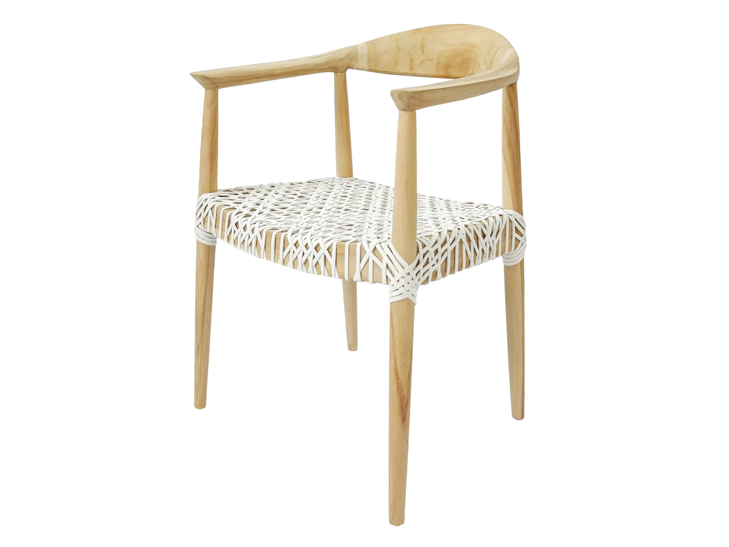 Crafted with simplicity and comfort in mind, the Venta Indoor Leather Strap Teak Dining Chair brings out the beauty of raw teak paired with handwoven white leather. Its clean silhouette, curved backrest, and low-profile arms make it a versatile fit for modern interiors, whether residential, hospitality, or retail display. Built with quality and designed for global buyers by one of the trusted Indonesian furniture suppliers, it’s a refined yet practical piece for curated collections.